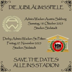 Admiraner,seit Monaten fiebern wir auf die beiden Spiele hin, nun können wir euch endlich über die Termine der beiden großen Jubiläumsspiele zu 120 Jahre Admira